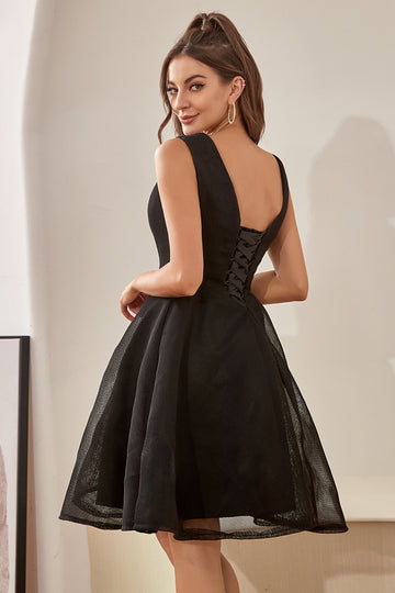 Lentejuelas Correas de espagueti Vestido negro de Cóctel
