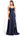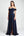 Vestido largo de invitada de boda estampado floral en línea A en azul marino