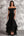Vestido largo de invitada de boda sirena negro con hombros descubiertos y volantes