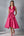 Vestido de invitada de boda de satén fucsia con escote en V de una línea