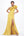 Vestido largo amarillo de invitada de boda con volantes de un hombro y abertura