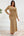 Vestido de invitada de boda midi sirena con cuello halter dorado