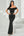 Vestido de fiesta largo ajustado con hombros descubiertos con cuentas negras