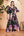 Vestido de fiesta largo con escote en V y flores negras con cinturón