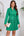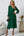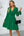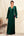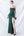 Vestido de fiesta largo cruzado de terciopelo con escote en V verde oscuro y mangas largas