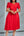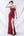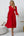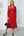Vestido de fiesta largo sirena rojo con cuello redondo y mangas largas