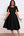 Vestido de fiesta corto de manga larga con volantes negro de manga larga y cinturón