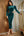 Vestido de fiesta largo de manga larga sirena verde oscuro con abertura