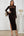 Vestido de fiesta largo cruzado de terciopelo marrón con hombros descubiertos