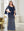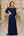 Vestido de fiesta largo con cuello de barco plisado azul marino