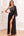 Vestido de fiesta negro con hombros descubiertos y abertura
