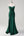 Vestido de dama de honor largo fruncido de satén con tirantes finos verde oscuro de una línea