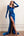 Vestido de terciopelo manga larga azul ajustado