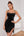 Vestido de cóctel corto negro con tirantes finos de una línea