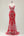 Rosa Rojo Flor Vaina Tirantes Espagueti Corsé Fruncido Vestido de Fiesta Largo Fruncido con Abertura