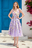 Púrpura A Línea Vestido de Fiesta Con Flores 3D