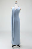 Vaina azul Vestido largo de dama de honor de satén de un hombro