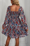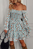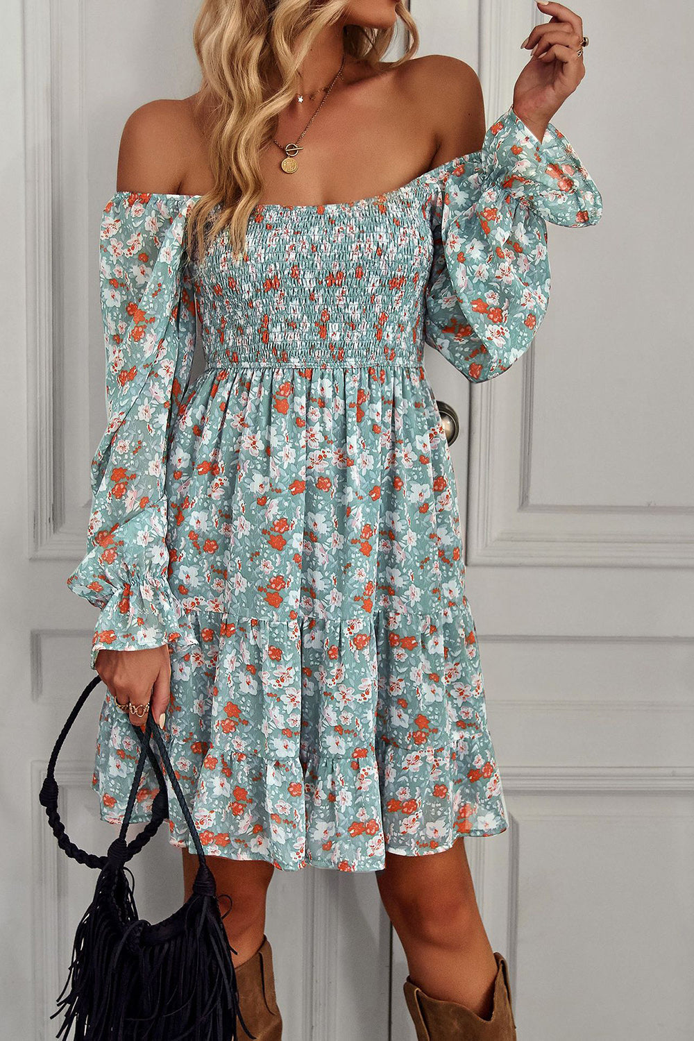 Vestido de Verano Mangas Largas Estampado Negro Fuera del Hombro
