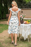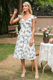Vestido de verano estampado en blanco con manga de gorra