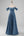 Vestido de dama de honor largo boho con hombros florales blancos y azules con volantes
