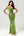 Vestido de dama de honor verde satinado con plisado