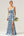 Vaina de flores azules Vestido de dama de honor largo sin espalda con escote en V profundo y abertura con volantes