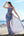 Vestido de dama de honor boho floral blanco azul con volantes