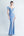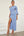 Vestido de fiesta azul con abertura con volantes de un hombro