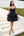 Vestido de fiesta corto de corte evasé con cuello cuadrado y cordón azul marino