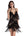 Vestido de cóctel midi asimétrico con escote en V y cuello sirena negro con mangas