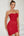 Correas de espagueti rojo abalorios vestido corto de bienvenida