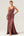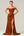 Vestido largo de dama de honor con corsé fruncido de hombro frío de sirena de café con abertura
