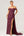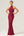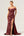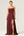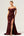 Vestido de dama de honor largo de satén satinado con abertura de línea A de color Rojo oscuro
