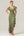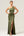 Vestido de dama de honor plisado de satén verde oliva con abertura