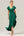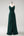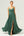 Vestido de dama de honor largo de satén con cordones en la espalda fruncida en verde oscuro