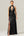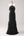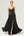 Tirantes de espagueti de sirena negra con volante en la espalda con lazo en la espalda vestido largo de dama de honor