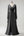 Tirantes de espagueti de sirena negra con volante en la espalda con lazo en la espalda vestido largo de dama de honor