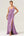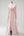 Vestido de dama de honor largo de satén cruzado con volantes cruzados de línea A rosa