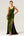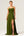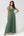 Vestido largo de dama de honor plisado verde de gasa plisado con hombros cruzados
