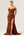 Vaina Terracota tirantes finos Vestido largo de dama de honor de satén fruncido con abertura