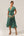 Vestido de dama de honor largo de satén con cordones en la espalda fruncida en verde oscuro