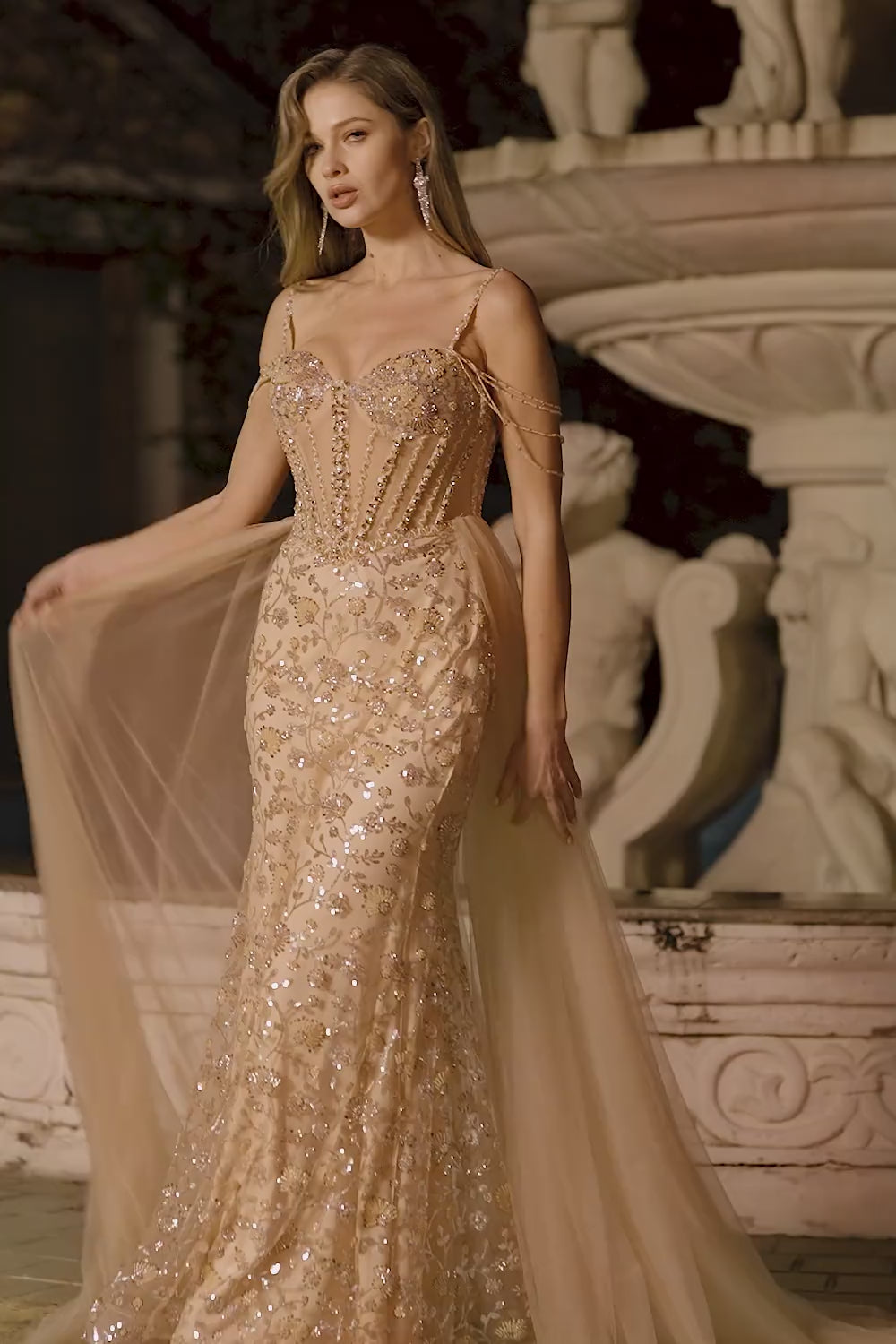 Corsé de sirena con champán brillante, vestido largo de graduación con cuentas