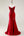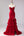 Vestido largo de graduación con corsé de cuentas y sirena roja con volantes y abertura