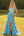 Vestido largo de baile de sirena floral azul con volantes y abertura