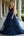 Vestido de fiesta largo de organza con tirantes finos de línea A azul oscuro