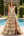 Vestido de fiesta largo con purpurina y tirantes finos dorados con abertura