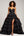 Vestido de fiesta negro con tirantes de espagueti de línea A con volantes altos-bajos