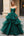 Vestido de fiesta de tul sin tirantes con volantes de línea A verde oscuro