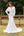 Vestido de novia de sirena blanca con hombros descubiertos con encaje de apliques