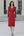 Vestido de trabajo midi con solapa de pico ajustado de terciopelo rojo